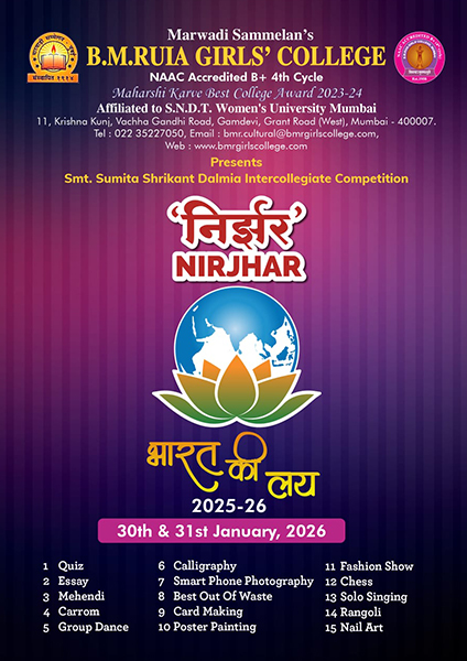 B.M.Ruia Girls’ College has a history of 61 years during which it has grown and developed into a distinguished institute of higher education. Our college offers undergraduate courses in Commerce (English medium) and Arts (Hindi medium).